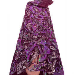 Chenlee púrpura cuentas pesadas tela nigeriana lentejuelas francés calidad encaje bordado